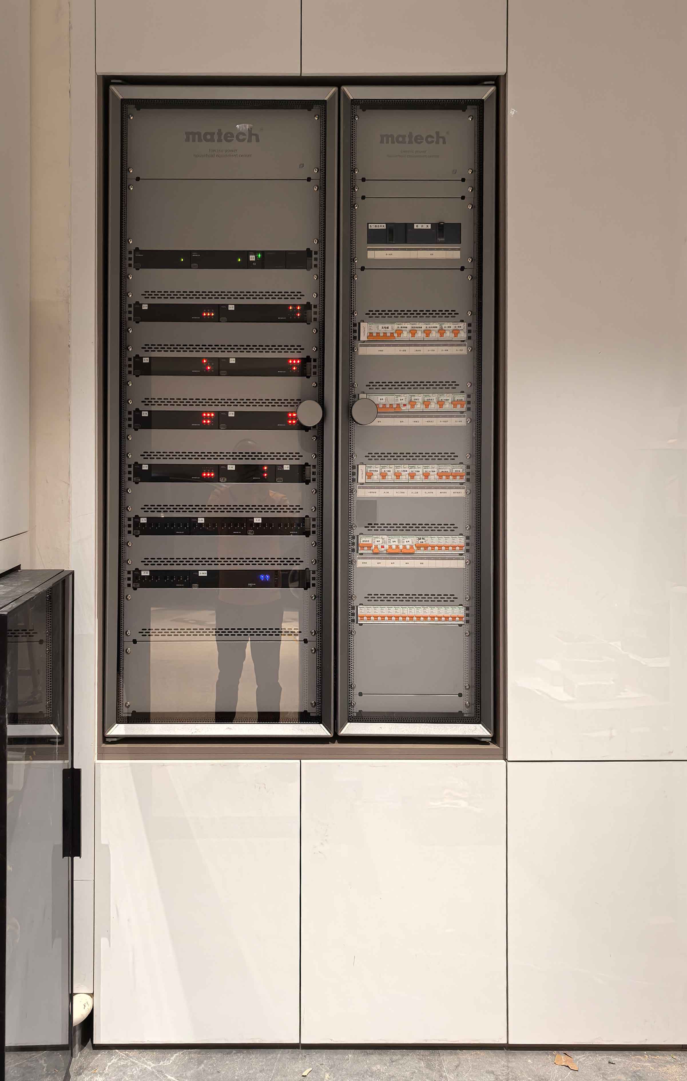 面對(duì)700平別墅后期電箱改造的難題——瑪徳克專業(yè)介入,全部拆舊煥新!并且采用“2層1控”方案 + 工廠預(yù)制化工藝 + 鉑睿設(shè)備中心系列拼接,實(shí)現(xiàn)強(qiáng)電與智能箱的完美融合,安全、高效、美觀一步到位!